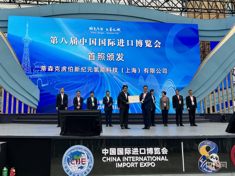 此外,在“首日”活动中,青浦区还举办了“首照”“首证”颁发仪式,为参展商蒂森克虏伯新纪元氢能科技(上海)有限公司和唐艺臻选(上海)食品科技有限公司分别颁发了首张营业执照和首张食品经营许可证。这两张证照的颁发,标志着两家企业正式落户青浦,为区域发展注入了新的活力。
